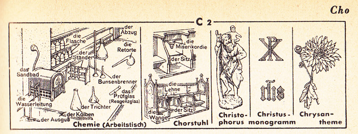 Chemie. Das Sandbad - Ich habe das jetzt einmal wikipediert. Es hat zwei Bedeutungen. Spatzen treffen sich regelmäßig an einem Sonntag, ducken sich in den Boden und wälzen sich im Sand. Nicht alleine, sondern mit der ganzen Klicke. Verhaltenswissenschaftler nennen das „Komfortverhalten“, was z.B. beim Menschen auch Räkeln und Nasebohren umfaßt. Das Komfortverhalten bei Tieren ist praktisch überhaupt nicht und beim Menschen nur wenig mehr erforscht. Komfortverhalten ist eine große, klaffende Lücke in der Sozialpsychologie. - In der Chemie ist das Sandbad ein Gerät, um Chemikalien langsam zu erhitzen, daß sie dabei nicht explodieren. In der Illustration ist eine gewisse Ratlosigkeit sichtbar, welche chemischen Instrumente wichtig sind bzw. dem Leser zugemutet werden können. Aber „die Flasche“, „der Ständer“ und „der Trichter“, lieber Brockhaus, das ist schon etwas flach für eine Redaktion, die Angster und Aquamanilen für zeichenswert hält.