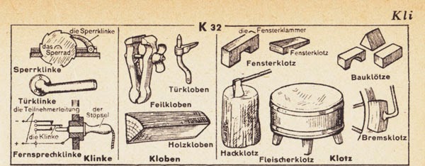 Kloben und Klotz. Jetzt haben wir uns bei der Klinke arg verplaudert,